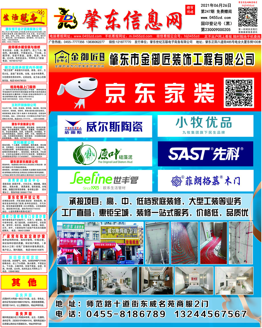 肇東信息網(wǎng)DM報紙2021年6月26日第247期