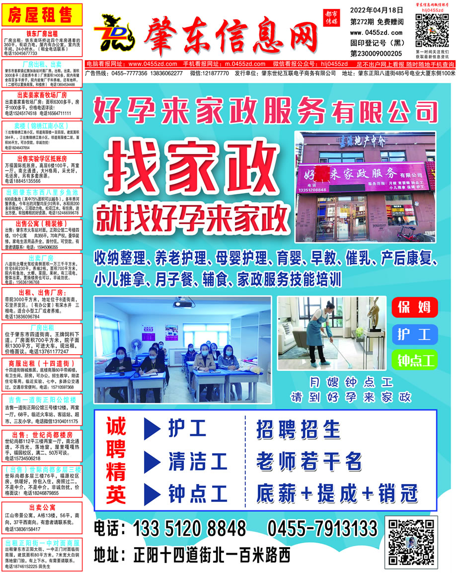肇東信息網(wǎng)DM報(bào)紙2022年4月18日第272期
