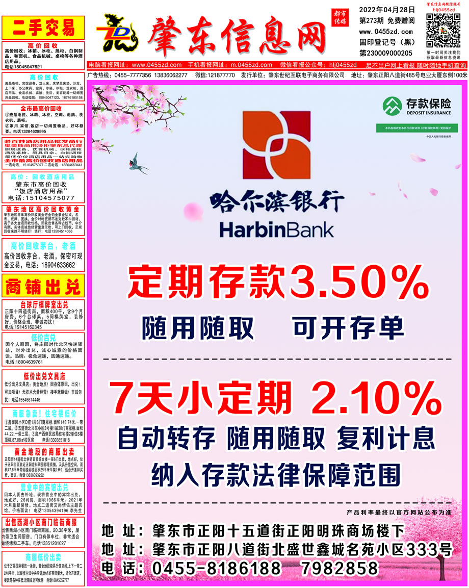 肇東信息網(wǎng)DM報(bào)紙2022年4月28日第273期