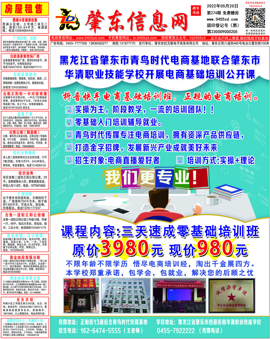 肇東信息網(wǎng)DM報(bào)紙2022年5月20日第274期