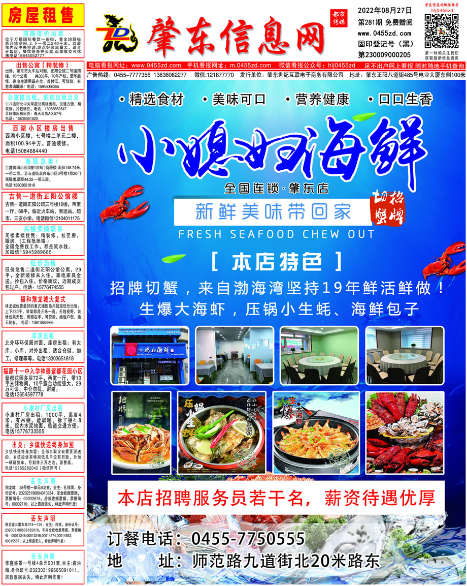 肇東信息網(wǎng)DM報(bào)紙2022年8月27日第281期
