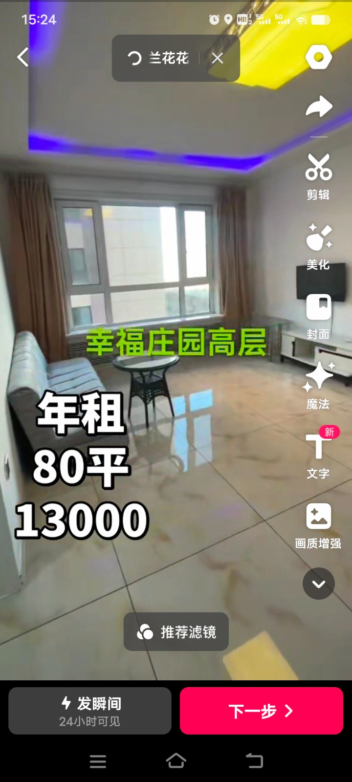 出租 ​幸福莊園高層10樓倆室一廳家電齊全,。拎包入住80平米五明戶型, ​13000