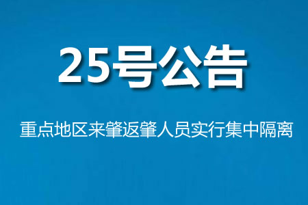 關(guān)于對(duì)重點(diǎn)地區(qū)來(lái)肇返肇人員實(shí)行集中隔離的公告