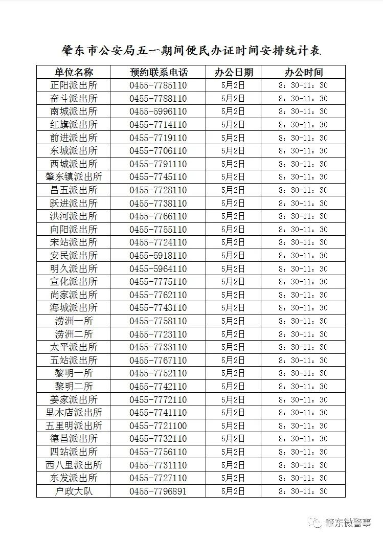 附件:肇東市公安局五一期間便民辦證時(shí)間安排表