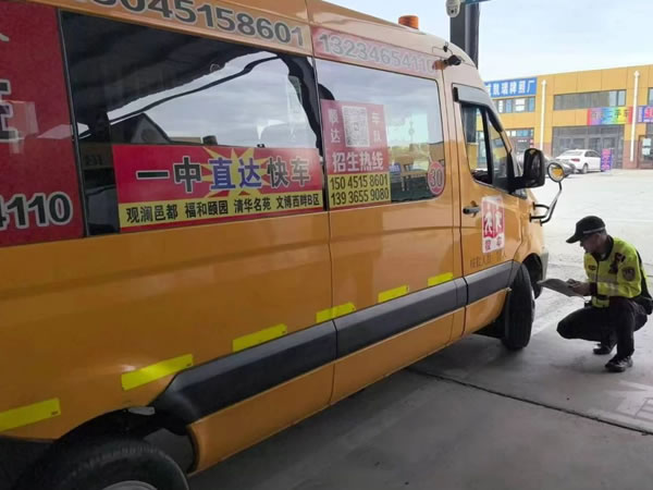 為確保新學(xué)期全市中小學(xué)校、幼兒園校車安全運(yùn)行,保障師生交通安全,9月3日開始,肇東交警大隊(duì)車管所民警對全市校車進(jìn)行安全查驗(yàn),并發(fā)放校車標(biāo)牌?紤]到待查驗(yàn)車輛較多,于是車管所決定抽調(diào)10名業(yè)務(wù)精干人員利用周末休息時(shí)間為這些校車開通“周末驗(yàn)車通道”。至9月8日,將195臺校車全部查驗(yàn)完畢,確保全市校車正常投入使用。