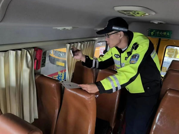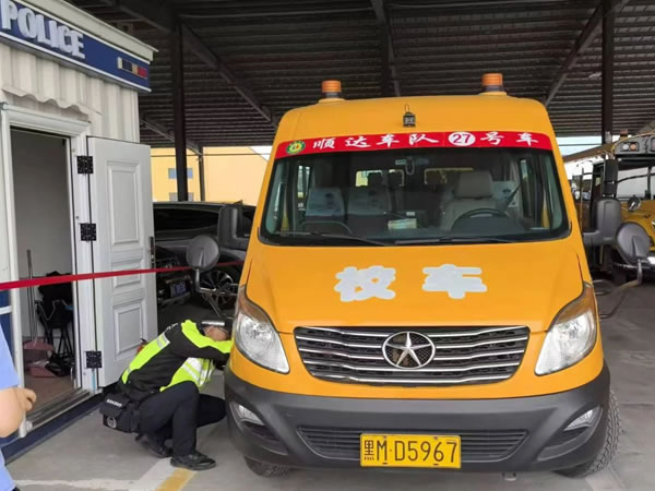 查驗(yàn)過程中,民警對校車標(biāo)志、滅火器、安全帶、安全錘、緊急逃生門、車輛燈光、停車指示牌、車輛年檢及保險(xiǎn)、輪胎的安全性能及校車技術(shù)狀況、安全駕駛情況以及校車安全管理措施落實(shí)情況等方面進(jìn)行安全大檢查。同時(shí)認(rèn)真核對了校車駕駛?cè)说鸟{駛資質(zhì),聽取了校車負(fù)責(zé)人對校車出行方式、安全隱患排查整治、企業(yè)主體責(zé)任落實(shí)情況介紹,并要求校車駕駛?cè)艘杂X遵守交通法規(guī),安全行駛、平安出行。