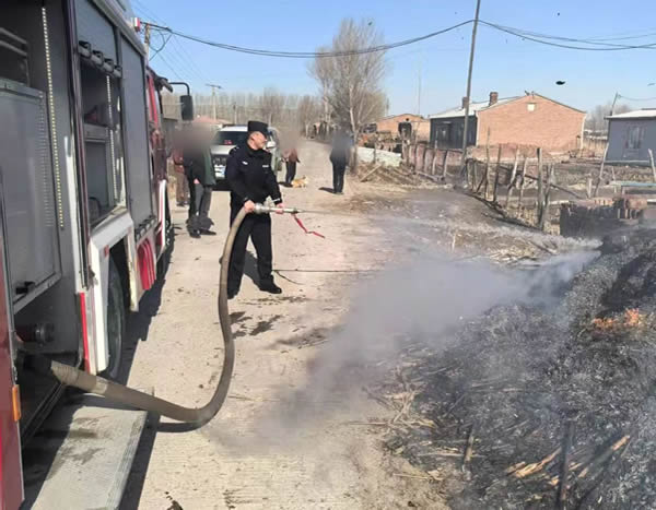 3月23日,姜家派出所接到群眾報(bào)警稱,自己家院墻外的柴草垛著火。情況緊急,火情就是命令,民警趕到現(xiàn)場(chǎng)后,發(fā)現(xiàn)火勢(shì)在向住房蔓延,一邊組織疏散現(xiàn)場(chǎng)及周邊群眾,一邊用消防車立即進(jìn)行滅火。經(jīng)過(guò)半小時(shí)的奮戰(zhàn),最終成功將火撲滅,消除了火災(zāi)隱患,減少人民群眾財(cái)產(chǎn)損失,現(xiàn)場(chǎng)無(wú)人員傷亡。