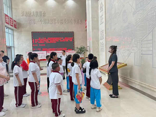 活動當日,陽光明媚,在“愛心媽媽”的陪伴下,肇東市新立小學的學生們滿懷好奇與期待踏入法院的大門。在解說員的引導下,大家有序參觀了訴訟服務(wù)中心、科技法庭、羈押室等場所,直觀感受到司法便民的舉措。走進莊嚴的審判法庭,看到高懸的國徽、威嚴的法臺,同學們深刻體會到法律的神圣與莊重。觸摸法槌、親身體驗法官、檢察官、辯護人等角色,讓大家興奮不已,也對司法工作有了更直觀的認識。在參觀過程中,“愛心媽媽”們始終陪伴在同學們身邊,細心地提醒大家注意安全,輕聲解答同學們的疑問,眼神中滿是關(guān)切與愛護。