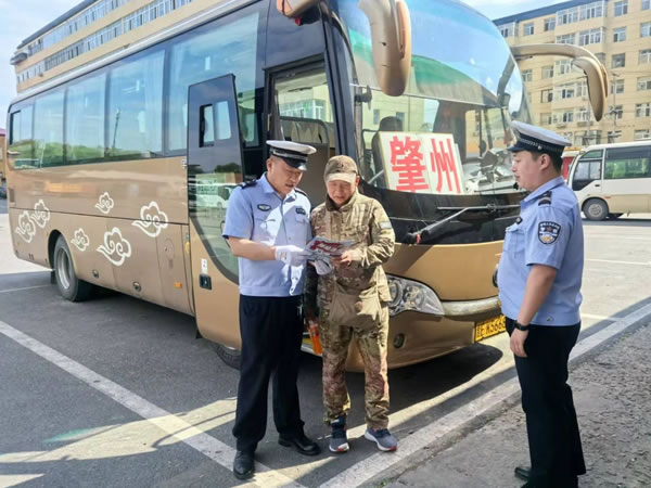 肇東公安交警走進(jìn)客運(yùn)站開展“一盔一帶”交通安全宣傳活動(dòng)