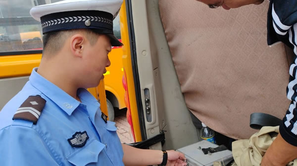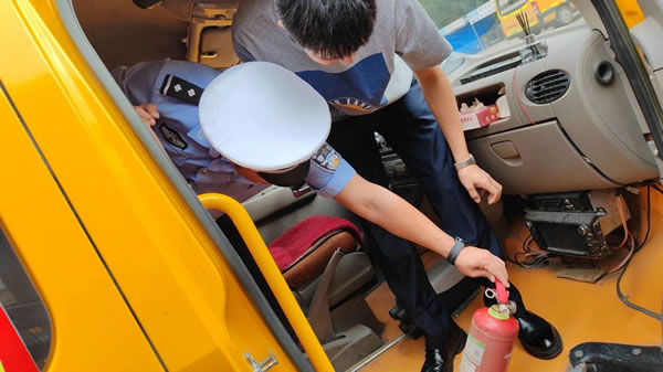 活動(dòng)中,客運(yùn)中隊(duì)民警首先對校車的輪胎、反光標(biāo)識、安全錘、逃生門、滅火器、安全帶、停車指示牌等安全設(shè)備進(jìn)行了認(rèn)真檢查,其次對校車車輛手續(xù)是否齊全、車輛車況是否良好、駕駛?cè)藴?zhǔn)駕車型是否相符、以及行車日志等信息進(jìn)行了細(xì)致的排查。民警對不符合標(biāo)準(zhǔn)的地方進(jìn)行了明確講解標(biāo)注,并下發(fā)《校車隱患整改通知書》責(zé)令校車負(fù)責(zé)人限期整改,確保每一輛校車能夠安全平穩(wěn)運(yùn)行。