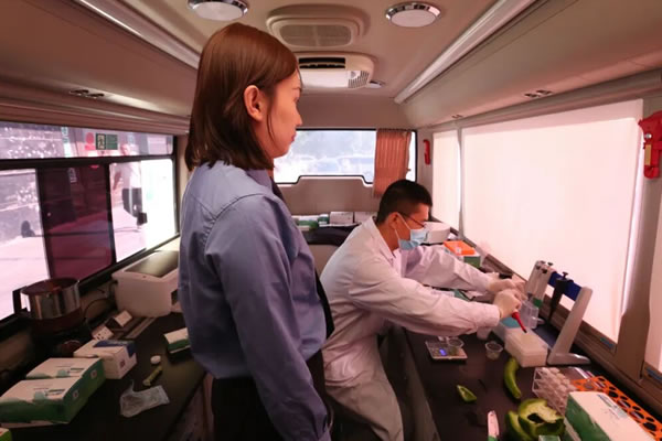 在快速檢測服務環(huán)節(jié),市場監(jiān)管人員現(xiàn)場對消費者剛購買的蔬菜、水果等農(nóng)產(chǎn)品進行農(nóng)藥殘留等項目免費快檢,讓消費者"零距離"感受食品安全保障,增強了消費信心。