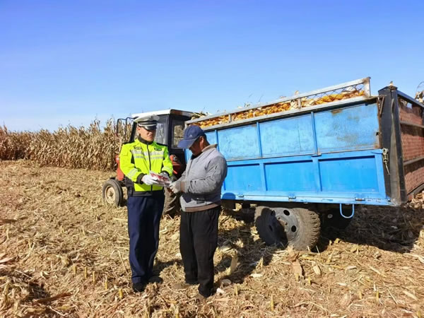 肇東公安交管大隊(duì)民警為農(nóng)民兄弟鋪就秋收平安路
