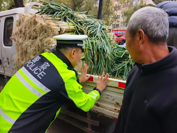 眼下正值秋菜收獲時(shí)節(jié),一輛輛滿載白菜、蘿卜、大蔥等秋菜的農(nóng)用三輪車、小貨車,從田間地頭駛向城市菜市場(chǎng),也駛進(jìn)了交管民警的“守護(hù)清單”。為了讓農(nóng)民朋友的“豐收菜”順利變成“增收錢”,肇東市公安局交管部門主動(dòng)靠前,用細(xì)致服務(wù)為秋菜運(yùn)輸車" />