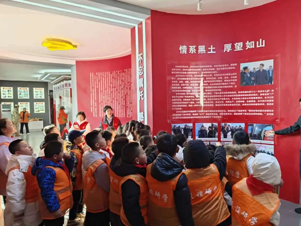 活動當(dāng)天,孩子們先走進(jìn)黎明鎮(zhèn)長富村紅色教育展館。沿著總書記視察路線,在講解員帶領(lǐng)下參觀 “長富精神” 等特色板塊,通過老照片、實物與場景復(fù)原,聆聽原黨支部書記 37 年深耕現(xiàn)代農(nóng)業(yè)的奮斗故事,在紅色文化中傳承艱苦奮斗精神。