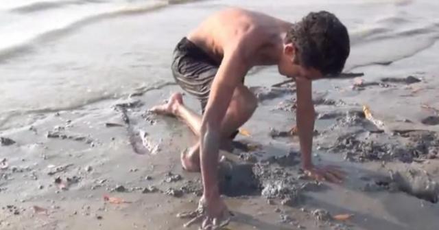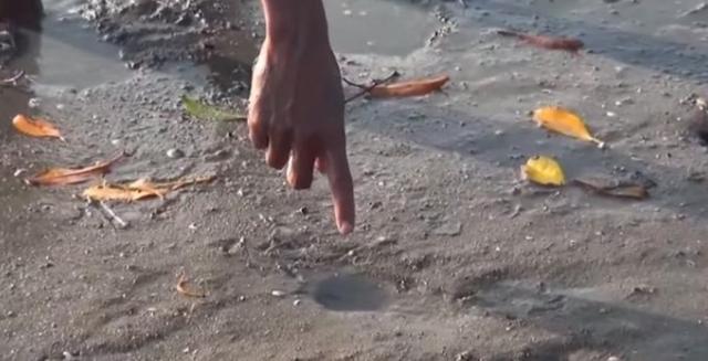 有幾名男孩就在退潮后去海灘上趕海時(shí),在泥潭上發(fā)現(xiàn)兩個(gè)洞,一個(gè)大的一個(gè)小的,現(xiàn)象著實(shí)奇特。 為了一探究竟,其中一位男孩把手伸進(jìn)了大洞里,令人驚奇的是,旁邊的小洞竟冒出了高高的水柱!